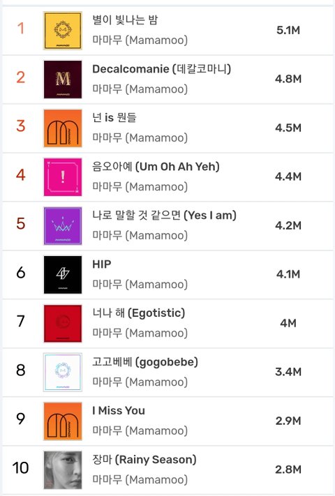 ((멜론 감상자수 순위 기준))