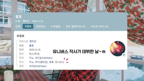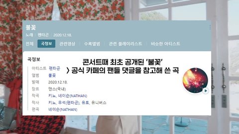 팬들이 공카에 써준 댓글로 멤버 키노가 작사, 작곡한 노래 '불꽃'을 처음 공개함