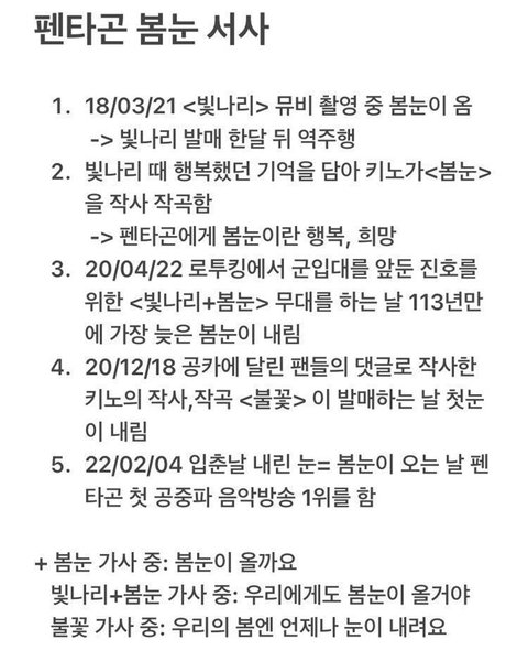 펜타곤에게 봄눈이란 행복, 희망