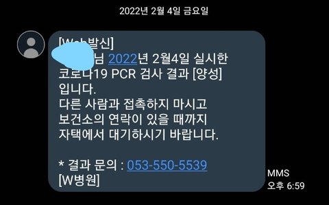 이 항원검사에서 양성판정을 받아버려 바로 PCR검사를 받은 후 당일 오후 6시에 결과가 나온다 하여 바로 집으로 귀가 후 마스크 착용상태로 방에서 자가격리를 했습니다..