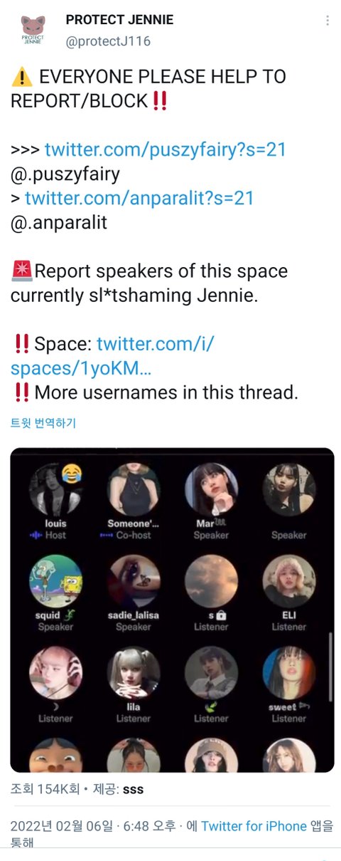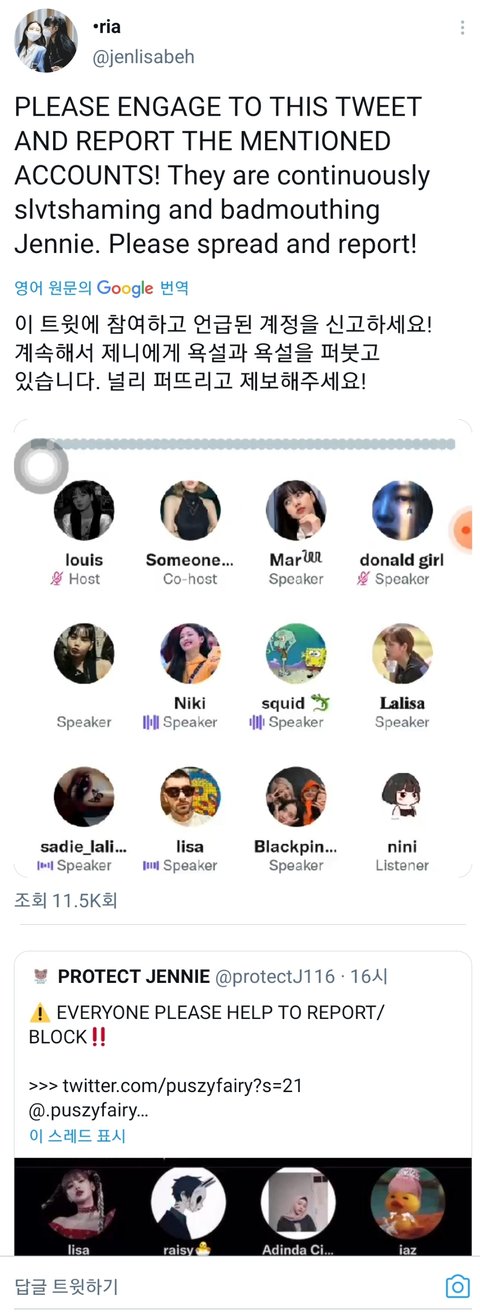 이번에도 트위터에서 리사악개들 제니안티들 모여서 제니 욕하는 스페이스 채팅 열어서 난리났어