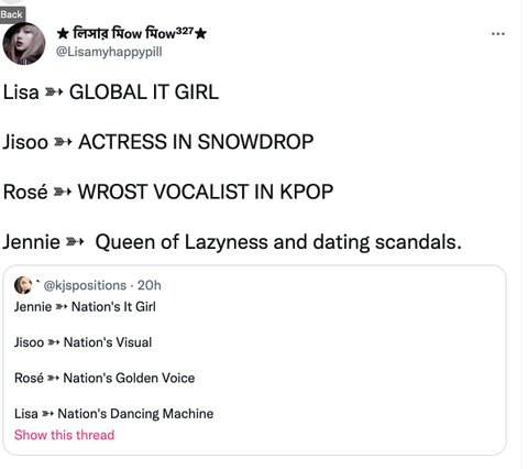 블핑 해외팬덤에서 리사 악개 집단이 제니랑 로제 괴롭히는게 사실이라서 이렇게 말하는거임