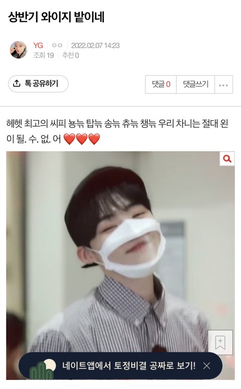 밑에 ㅂㅅ 같은 글이 굳이 이 첩첩산골 우리 와지 팬톡까지 친히 왕림해서 글 싸지르는 거 보면 이번에 와이지애들 다 대성공할 듯.