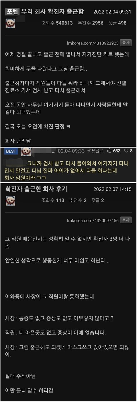 양성인데 출근한 확진자