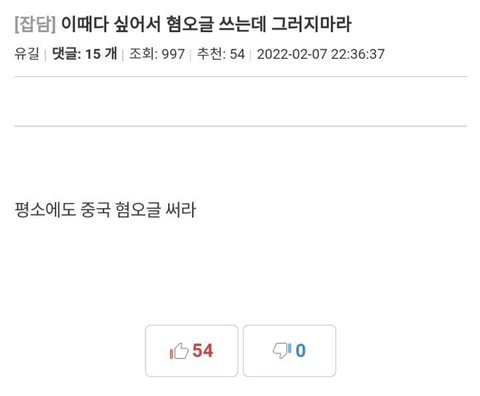 평소에도 중국 혐오글 써라