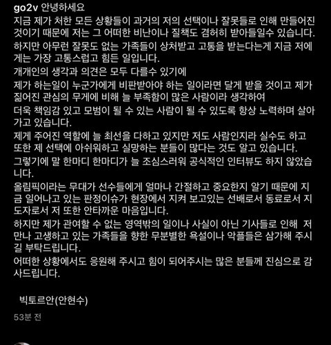 코치나 감독으로 갈 순 있지 그건 머 뭐라 할수가 없는데.. 선배나 지도자로서 안타까웠다 이건 진심 위선적이다...ㅋㅋ 편파판정으로 중국 선수들 다 결승 올려보낼 때 그렇게 좋아했으면서 무슨...