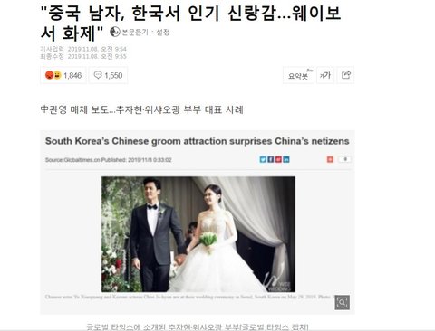 중국남과 외국녀 국제결혼은 행복, 자국녀 외국남 국제결혼은 불행하다고 주장