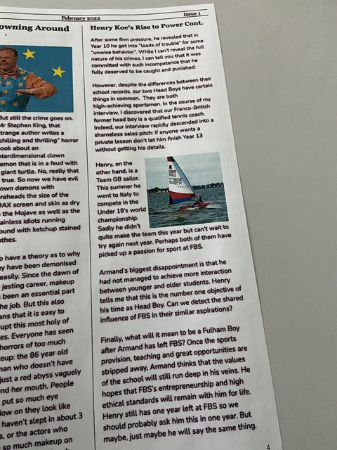 마지막으로, 아르망이 떠난 후에 풀햄 학생이 된다는 것은 무엇을 의미하는가? 스포츠 제공, 티칭과 좋은 기회들이 사라질것이다. 아르망은 학교의 가치는 핏속 깊히 간직될거라고 말한다. 그는 FBS의 기업가정신과 높은 윤리적 기준이 평생 자신에게 남아있기를 바란다.