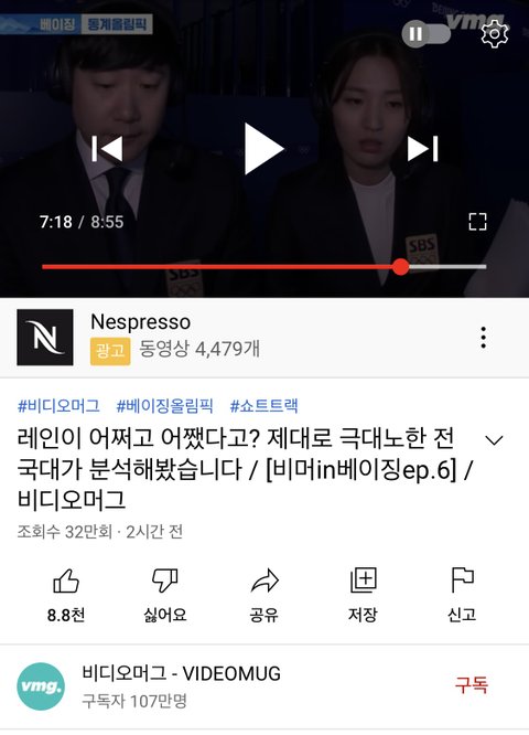 엊그제 쇼트트랙 비디오머그 영상에 차일드