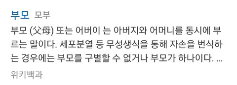 나는 부모든 모부든 솔직히 순서에 상관없고 편한대로 쓰거든..? 근데 내가 모부님이라고 했더니 애들이 막 페미같은거 하냐는거야 모부님이라고 부르는게 잘못된거야? 내가 아득바득 "남성보다 여성이 위대하니까 부모가 아닌 모부로 불러야한다~" 이런것도 아니고 그냥 모부도 쓰고 부모도 쓰고 그런건데..