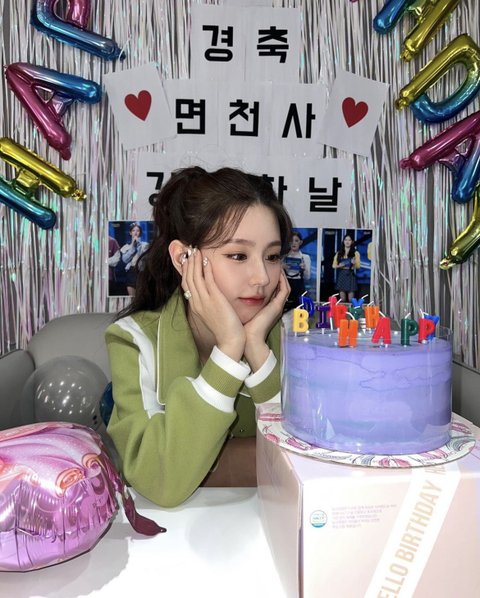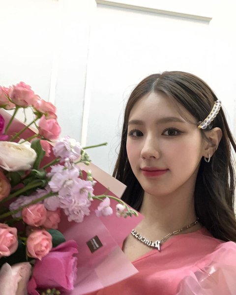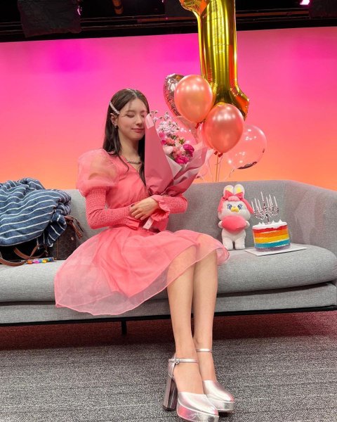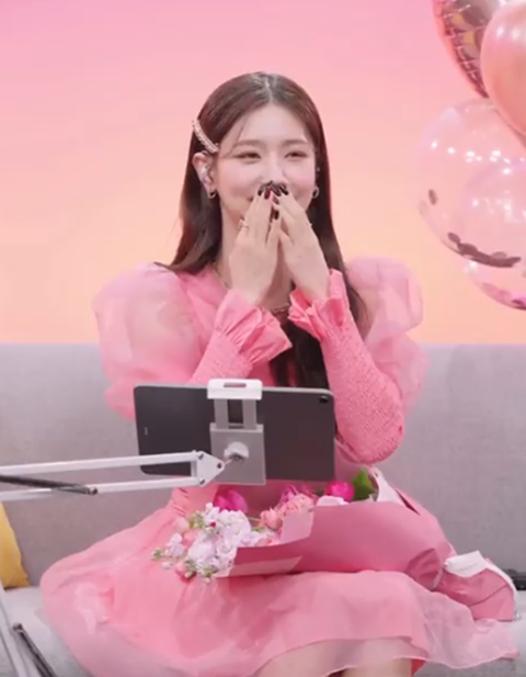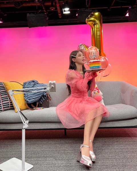 핑크 드레스에 핑크 배경에 꽃이랑 케이크까지 있으니까
