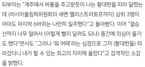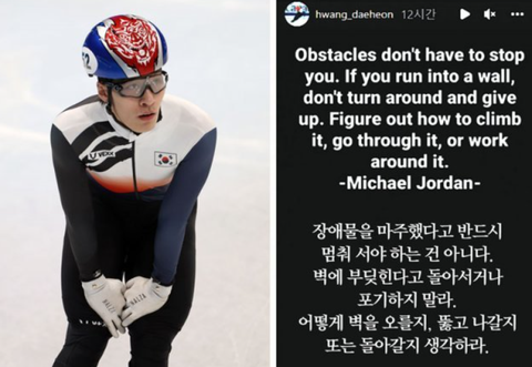 마이클 조던의 말을 남긴 황대헌 ㅠ