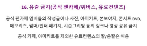 우리 팬톡은 위.버스 유출 금지 규칙이 있음