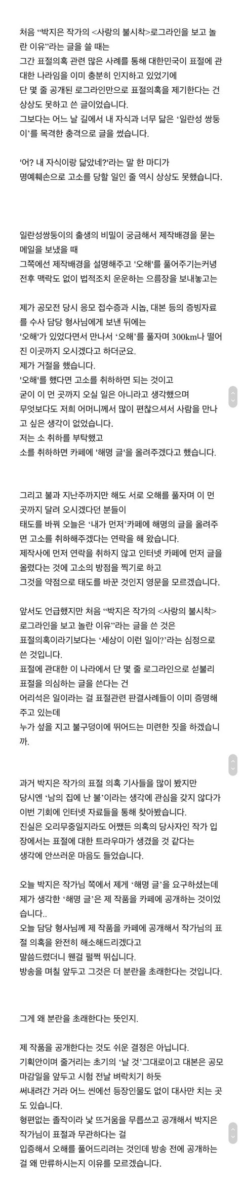 사랑의불시착 표절 중에 가장 악질인 표절임 피해 입은 작가 분은 정신과 치료 받고 다닌다는데 표절한 거 소비 티내는 애들은 뭐냐; 어휴 우리나라 저작권 의삭 1도 없음 사불 작가 별그대 푸바전 다 표절이었음 홍자매 작품도 소비 하지 마 김태리 남주혁 나오는 2521도 검블유 작가고 이 작가도 입봉작품인데 미스슬로운 통째로 베낀 거임 ㅋㅋ어휴 개한심