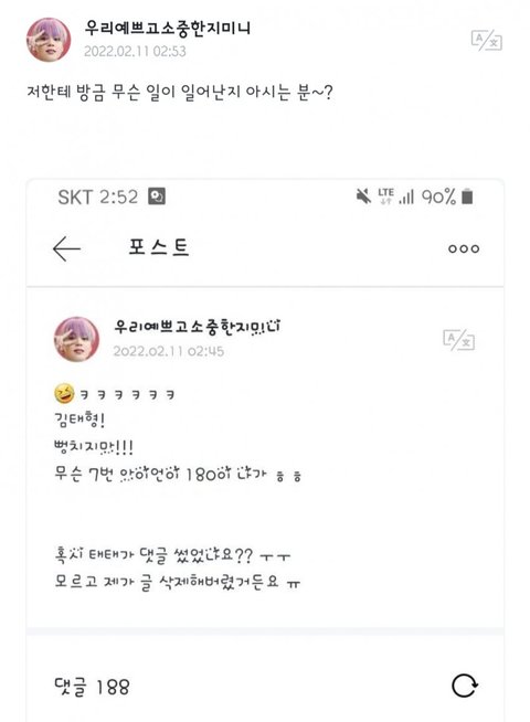 태형이 위버스 지워진 댓글 원글 분이 쓰신거