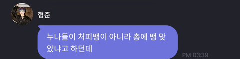 "처피뱅아니라 총에 '뱅' 맞은거 아니야?"