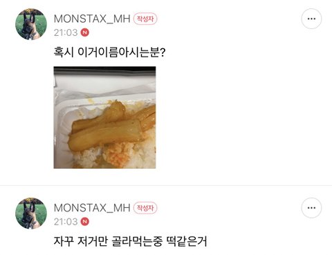 참나,, 하다하다 분모자 좋아하는 것도 귀여워 저거 맛있다고 사진 찍은것도 귀엽고 구석에 가지런히 모아 놓은 것도 귀엽고 밥 조금 먹은 상태인것도 귀여움 어떡하면 좋아