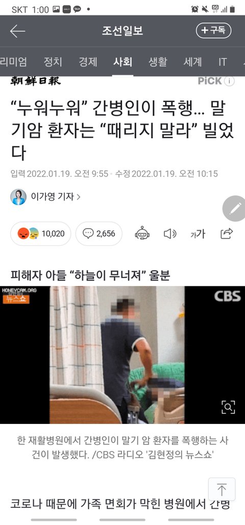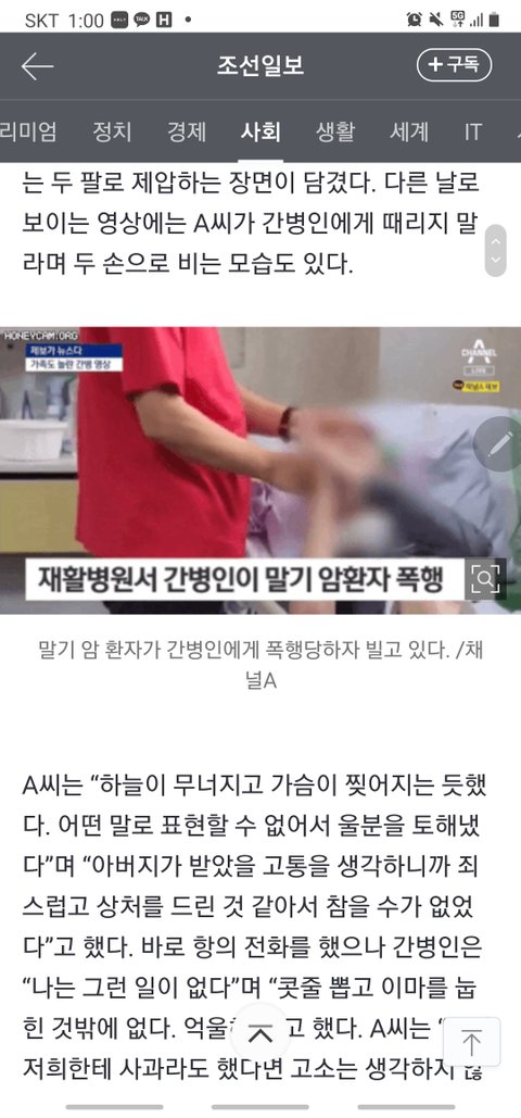 얼마전 뉴스에서 나온 장면은 충격 그 자체였습니다.말기간암에 걸린 고령의 환자는 중국교포 간병인에게 지속적인 학대를 당하고 있었습니다.