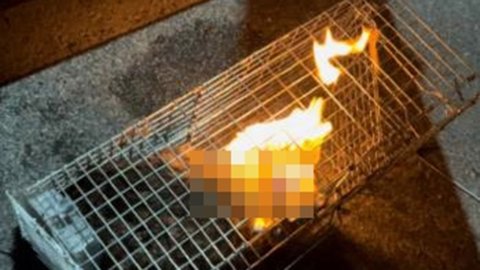 한 게시물을 보면 포획용 틀에 갇힌 회갈색 고양이가 온몸에 불이 붙어 고통스러워하며 몸부림치는 모습이 담겼습니다.