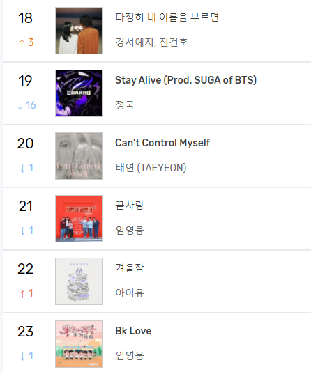 ㅋㅋㅋㅋ 정국이 달랑 내놓은 하이브 웹툰 오스트가 느그 망돌 정규보다 잘나가서 부럽지 ㅠ 그냥 계속 그런식으로 살다 뒤져라