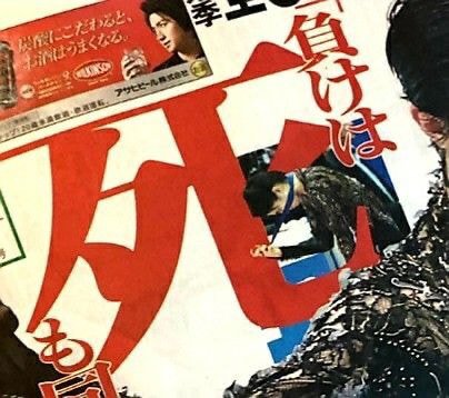 세계선수권 2등하자 빨간 글씨로 '죽을 사' 배경으로 박음