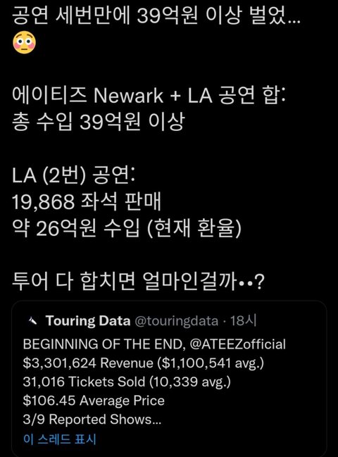 아니잠깐만 미국투어에 39억이 아니고 공연 세번에... 대단하다
