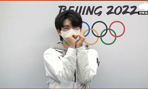 하트 하면서 눈웃음 짓는 차준환 보고 가