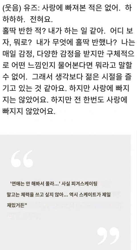 하뉴는 저 스펙에 연애도 안해봤나봐