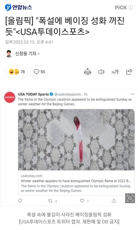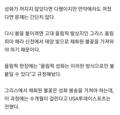 얘들아 올림픽 성화 불 꺼졌대