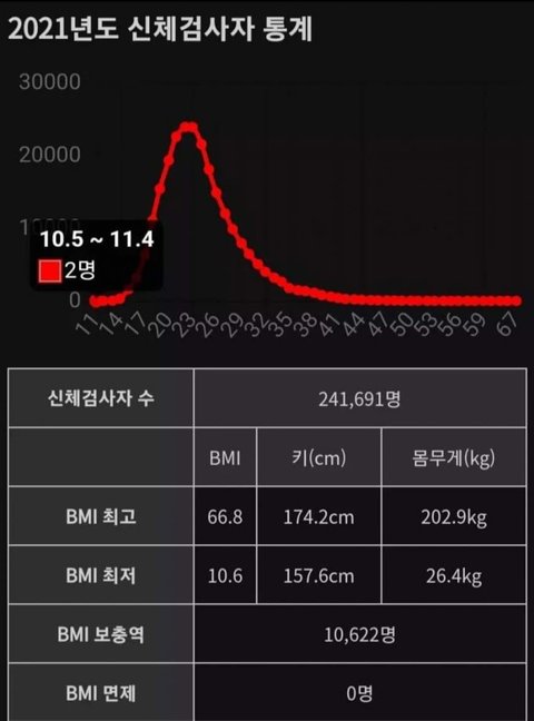 2021년 병무청 신체검사 bmi 최고/최저치 봤냐