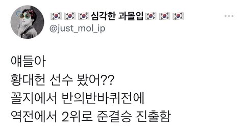 레인 오른쪽에서 출발할수록 불리한데 5명 중에 맨 오른쪽으로 출발했음 그래서 마지막바퀴까지 5위였는데 역전해서 2위로 오르고 중결승옹라감