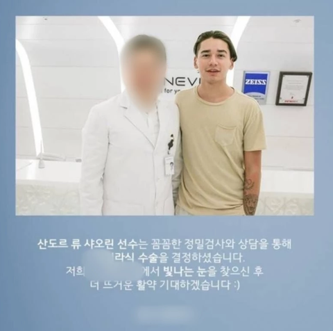 "그는 한국에서 눈 수술(라식)을 받았고,