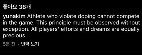 도핑을 위반한 선수는 경기에 참가할 수 없습니다. 이 원칙은 예외 없이 준수되어야 합니다. 모든 선수의 노력과 꿈은 똑같이 소중합니다.