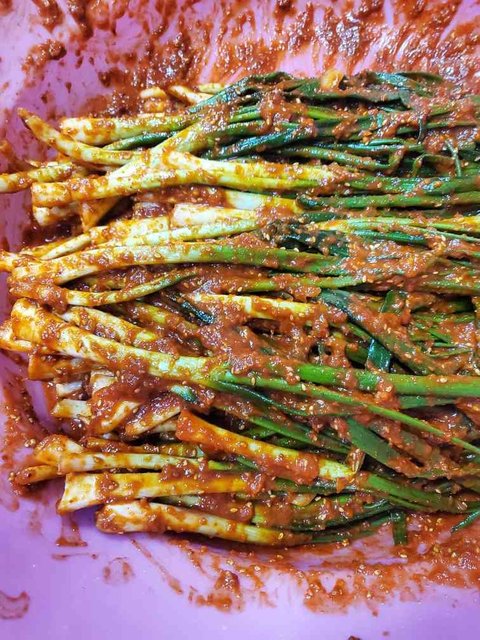 남은 양념으로 부추김치까지!