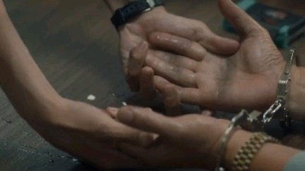 힘을 주기위해 스카프를 양손으로 감았겠죠