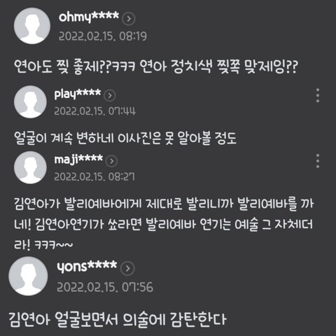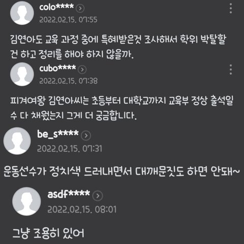 김연아한테 저런 댓글을 단다고? 한국인들이 아닌데.. 현실뿐 아니라 한국인들 가득한 커뮤에서 김연아 부정적인 여론 나오는걸 본적이 없는데 저긴 대체 뭐임