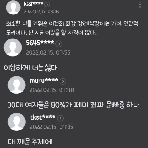 네이버 댓글 걍 남초커뮤 지박령인 정신이상자들이 지배하는곳이라 댓글진짜 저급하고 천박해서 무시하면 되는 곳임