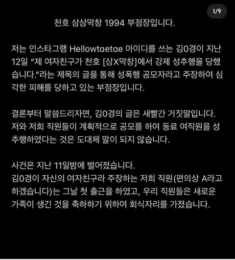 얼마전 인스타에서 난리났었던 막창집 성추행사건 부점장 해명글