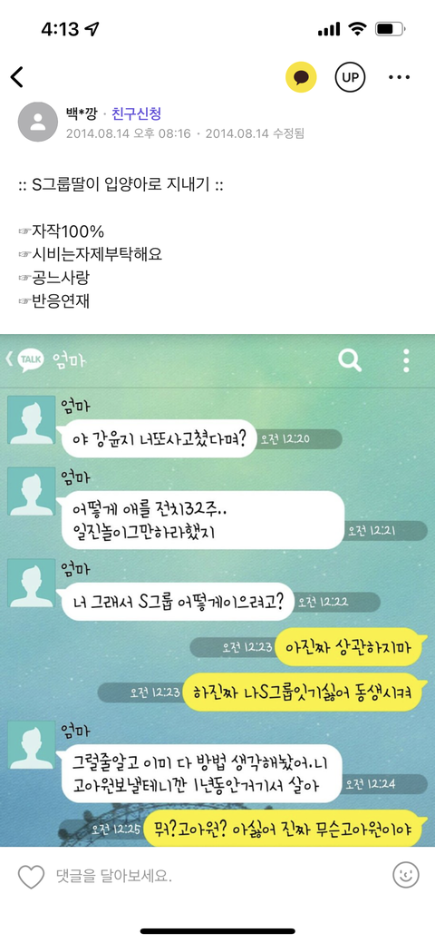카톡 프로필 아래에 카카오스토리 버튼이 있잔아 그래서 걍 ㅈㄴ 오랜만에 들어가봤더니 이딴거 공유시켜놨었더라 ㅅㅂ 바로 공유 취소하고옴