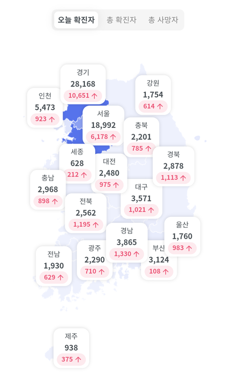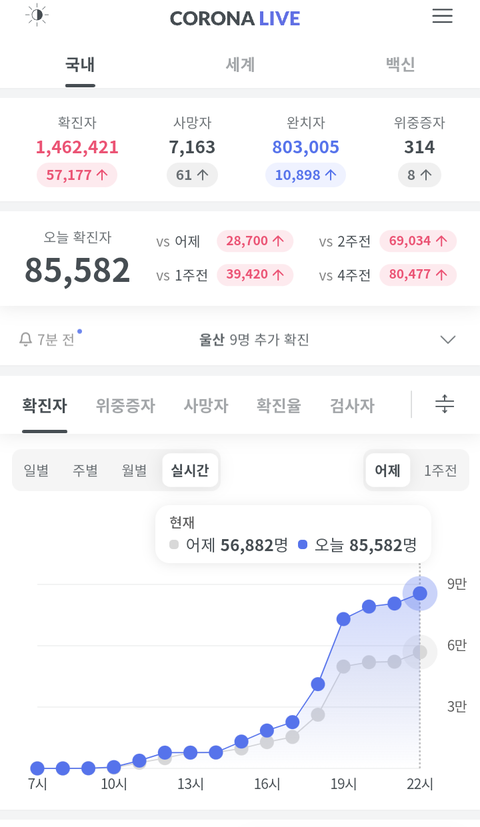 코로나 라이브 실시간 현재 85,582명