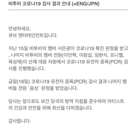 안녕하세요 큐브엔터테이먼트입니다 말고