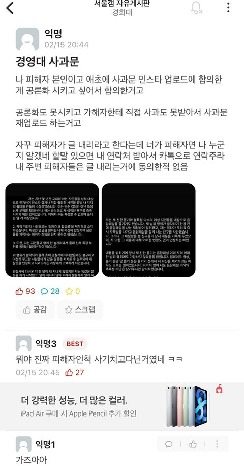 글쓴인데 나 절대 글삭 안함 만약 글 삭제되면 운영자가 글 썬거임 ㅋㅋㅋ 이미 한번 글 썰림 내 글에 뭔 문제가 있다고 ㅋㅋㅋㅋ 운영자 뭐가 찔려서 글삭 하는거냐??