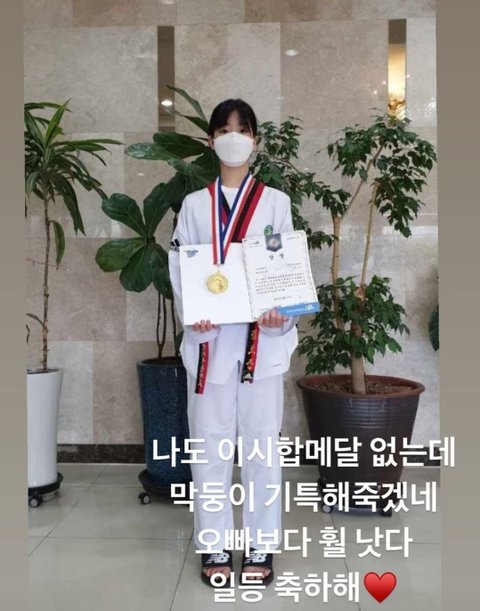 여동생이 전국 태권도대회 중등부 라이트급 일등하자 인스타로 또 자랑하러 온 아이돌