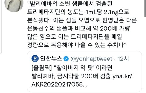 약쟁이 발리예바가 ㅈ밥이라 유영보다 못한게 아니라.. 혹시 다시 볼 수 있음 봐바. 발리예바 본인 반응이나 코치 반응ㅋㅋ 점프 실패해도 본인이나 코치들이나 시큰둥함.아니면 개 발연기던가. 점수 발표도 마찬가지고. 이번에 발리예바 메달따면 ioc에서 시상식 진행 안한다고 했었는데 귀신같이 다 실패하고 4위했지? 저거 이미 ㅈ된거같으니 미리 입 맞춰서 일부러 실패하고 4위 시켜주자 해서 다 연기한거같음