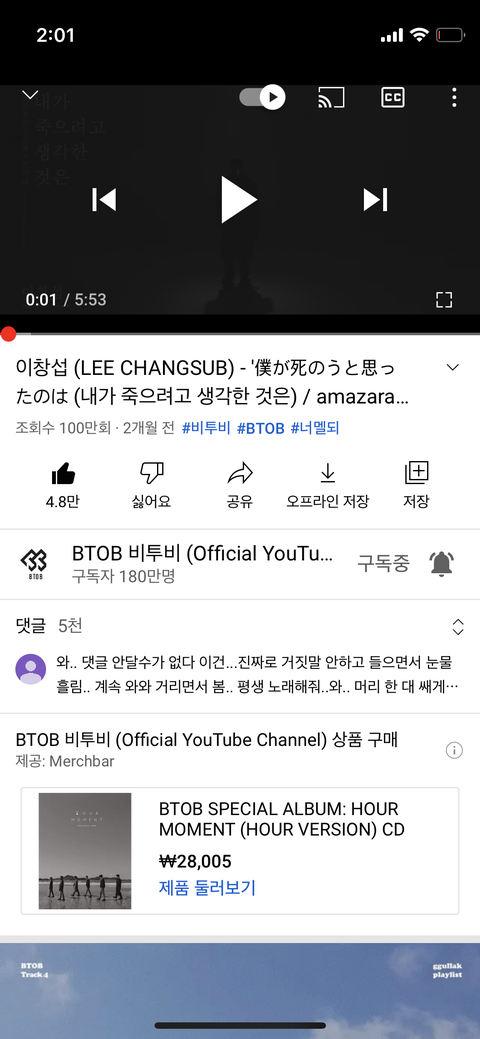 이창섭 너멜되 조회수 100만 축하해!!