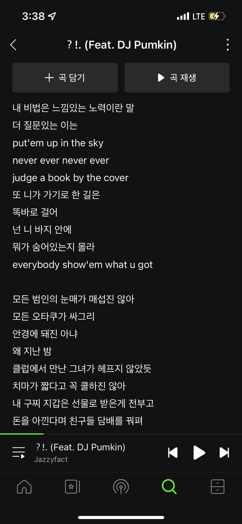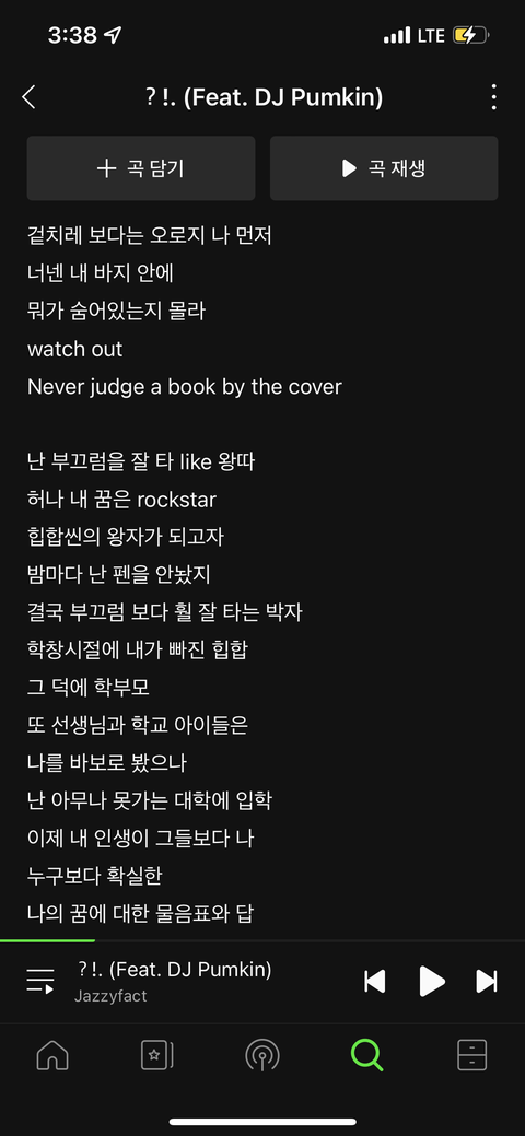 카톡 추가해서 프로필 봤더니 프로필뮤직에 힙합?노래가 있는거임 그래서 멜론으로 찾아봤더니 가사가 전체적으로는 ㄱㅊ은데 중간중간 좀 그럼