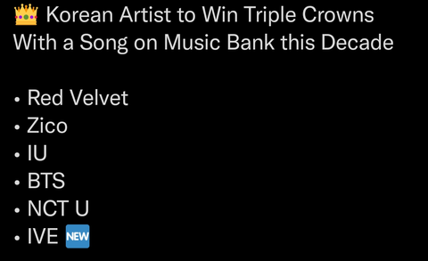 뮤직뱅크 트리플 크라운 6번째 달성 (기존 레드벨벳 지코 아이유 BTS NCT U)
