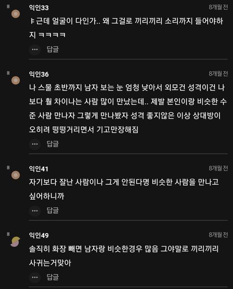 연애는 외모가 다가 아니야 ㅋㅋ 뚱뚱하고 못생긴 여자도 남자 잘 만나서 사귀고 뚱뚱하고 못생긴 남자도 여자 잘 만나서 사귀잖아