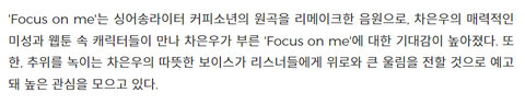 이번에 커피소년 ‘Focus on me’ 리메이크해서 나온다고 함