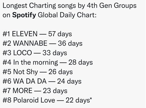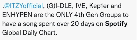 스포티파이 글로벌 20일이상 차트인한건 알고있니?